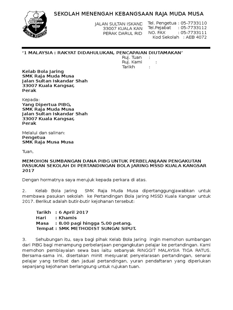 Surat Memohon Bantuan Kewangan Daripada Pibg Pdf