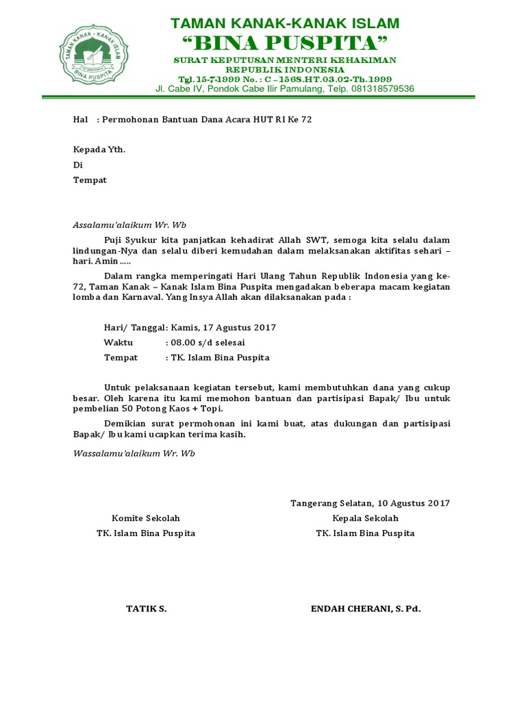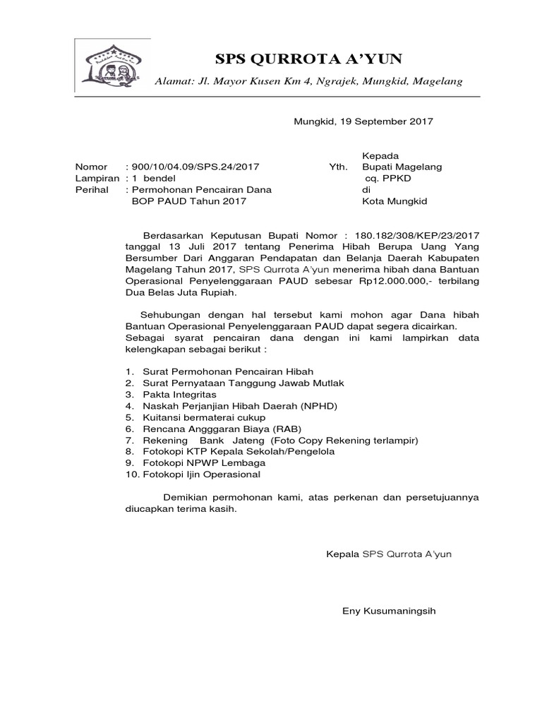 Proposal Permohonan Bantuan Operas10nal Paud Tahun 2017 M. Contoh surat permohonan bantuan dana pendidikan Sekolah dan Kuliahdocx contoh surat permohonan bantuan dana pendidikan Sekolah dan Kuliahdocx ini tersimpan di Google. Pemerintah melalui Kementerian Pendidikan dan Kebudayaan melalui anggaran pendapatan dan belanja negara APBN tahun 2017 mengalokasikan dana untuk pembangunan 75 Unit.