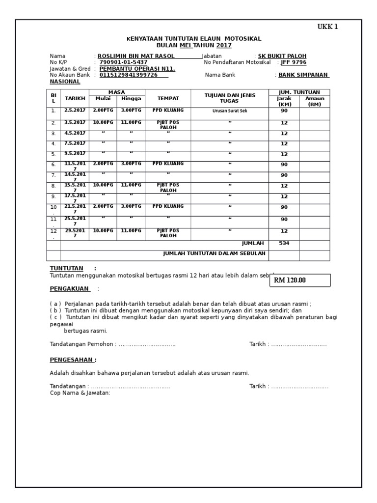 Kenyataan Tuntutan Elaun Motosikal Pdf
